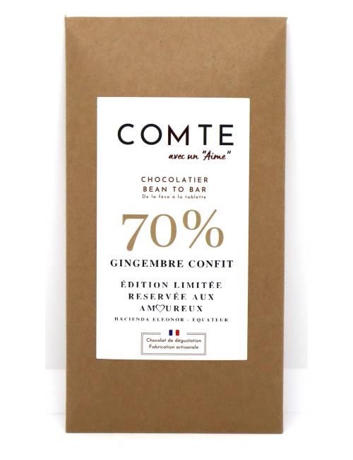 Tablette chocolat 70% Gingembre confit 60g