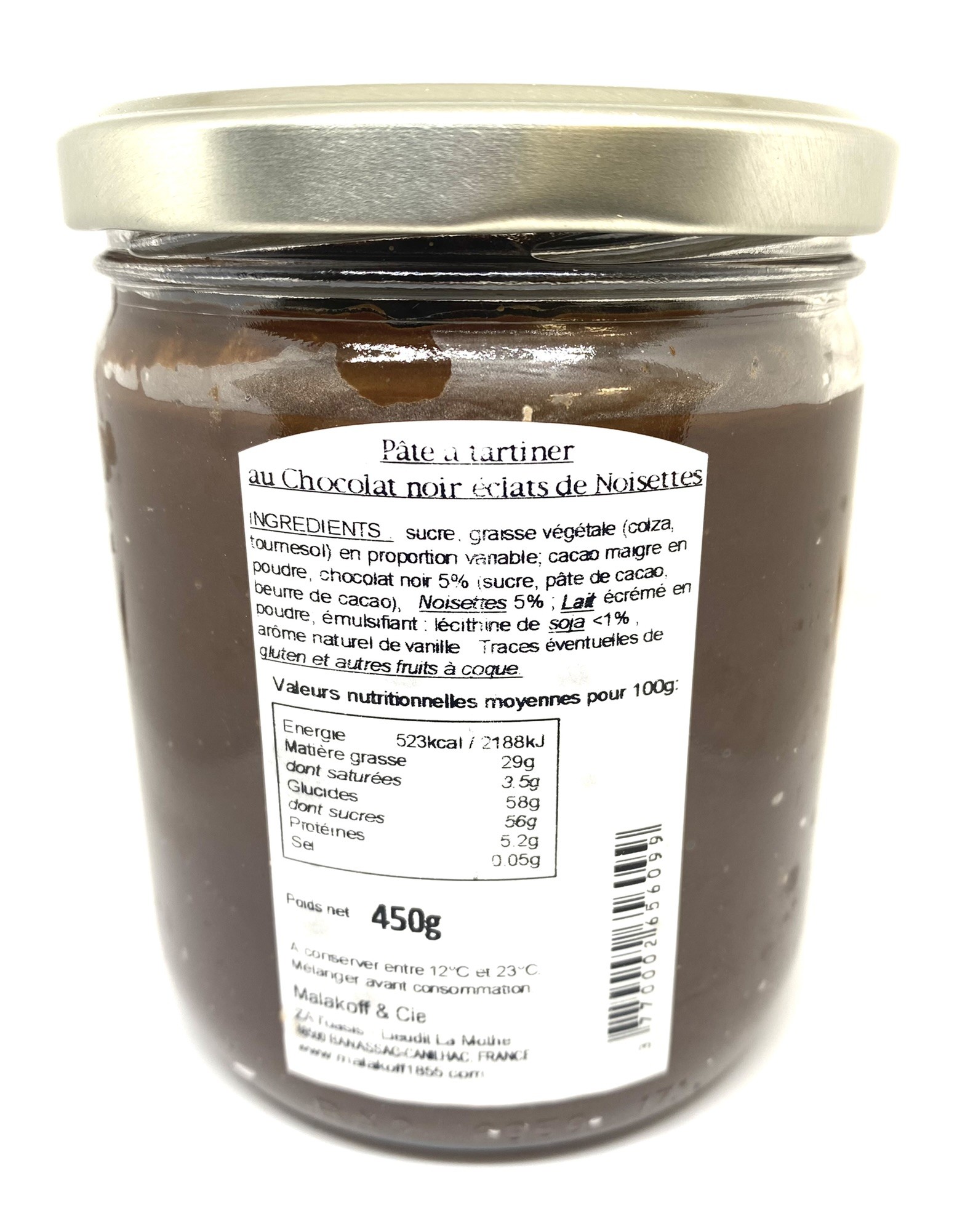 La pâte à tartiner au chocolat noir intense et profond qui rendra vos moments de plaisirs inoubliables. Vous découvrirez une pâte à tartiner artisanale et sans huile de palme Malakoff accompagnée d’éclats de noisettes rigoureusement sélectionnées pour obtenir une pâte au chocolat noir onctueuse et si gourmande.
