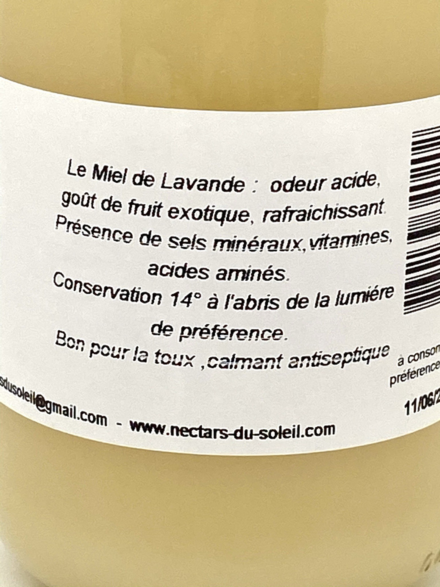 Récolté par leurs abeilles sur les fleurs de lavande, Latifolia et Oficinalis, en Provence
