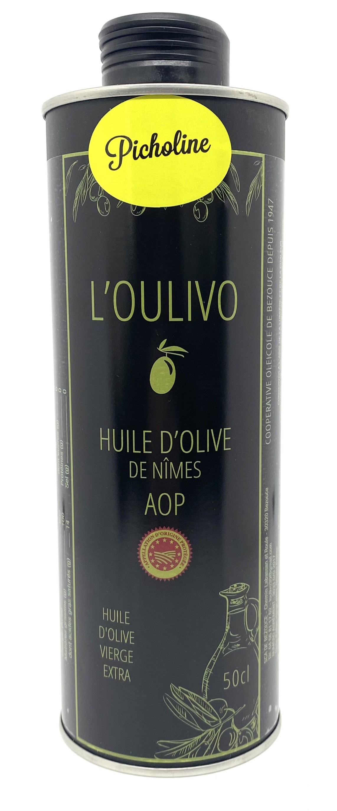 - Huile d'olive de Nîmes Picholine en métal 50cl
