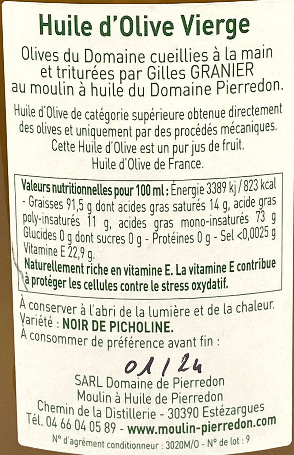 - Huile d'olive Noir de Picholine 75cl