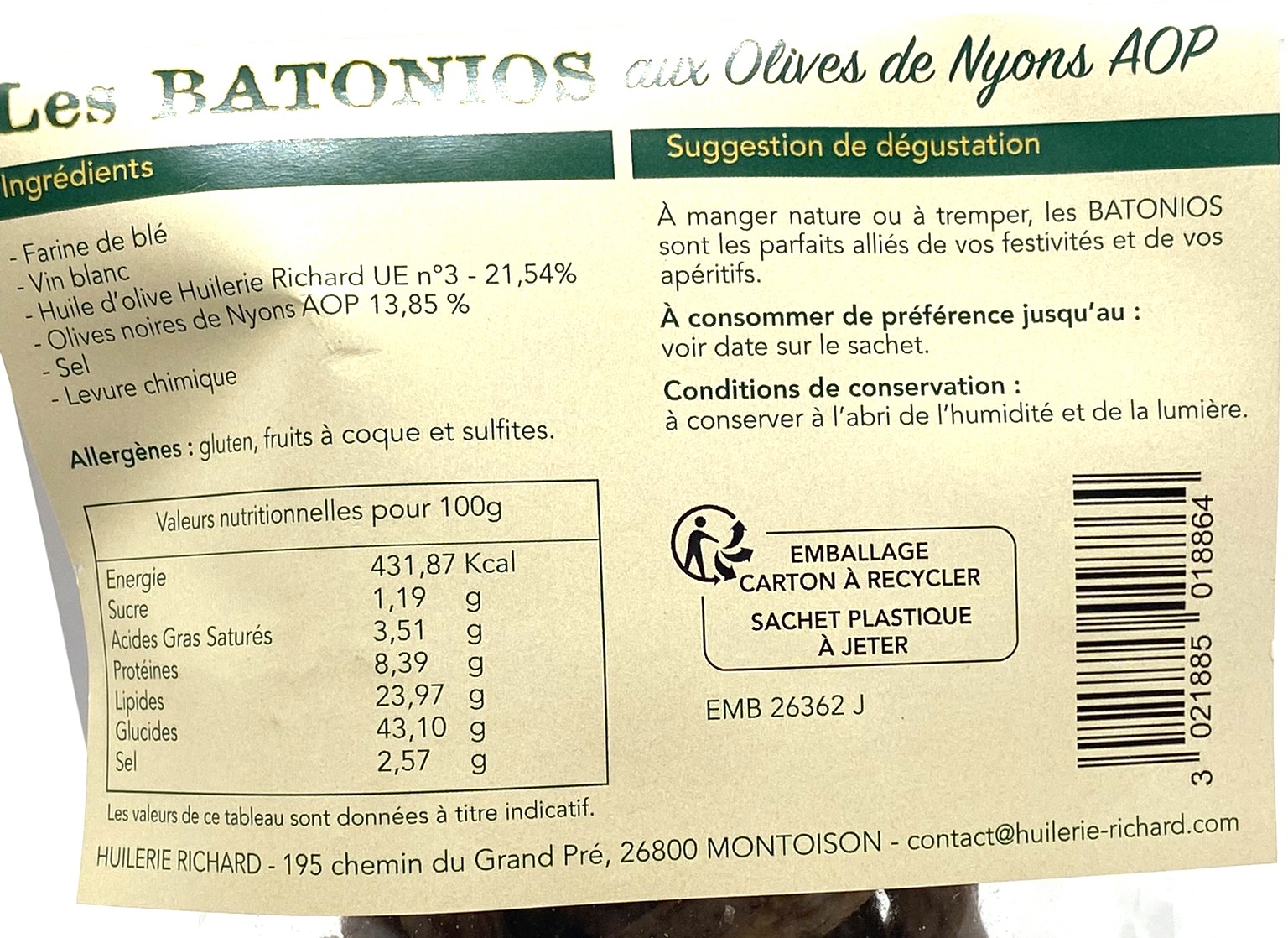 - Batonios aux olives de Nyons AOP 150g