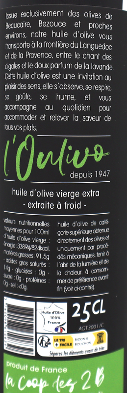 En 1947, 85 oléiculteurs du secteur de Bezouce dans le département du Gard unissent leurs efforts en créant une coopérative oléicole : L’Oulivo.