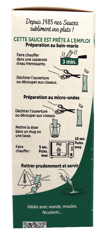 La sauce Roquefort est conditionnée en doses individuelles de 50g, idéal pour 1 à 2 personnes.