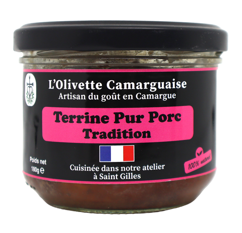 Élaborée exclusivement avec du porc 100 % français, cette terrine offre une texture délicatement fondante et une saveur généreuse, relevée par un assaisonnement maîtrisé. Préparée artisanalement dans notre atelier à Saint-Gilles, elle met en valeur la qualité d’une viande française travaillée avec précision. À savourer sur pain grillé pour un apéritif raffiné, authentique et gourmand.