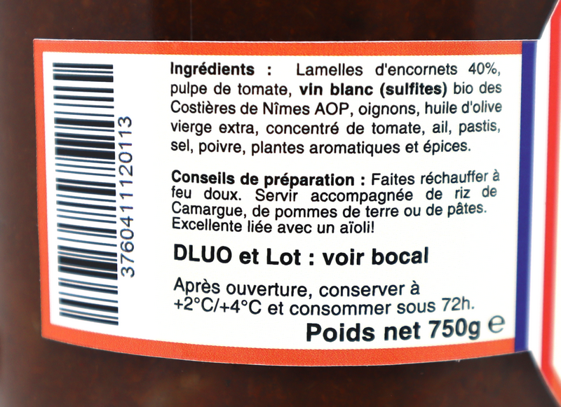 Excellente avec du riz de Camargue, des pâtes fraîches ou des pommes vapeur.