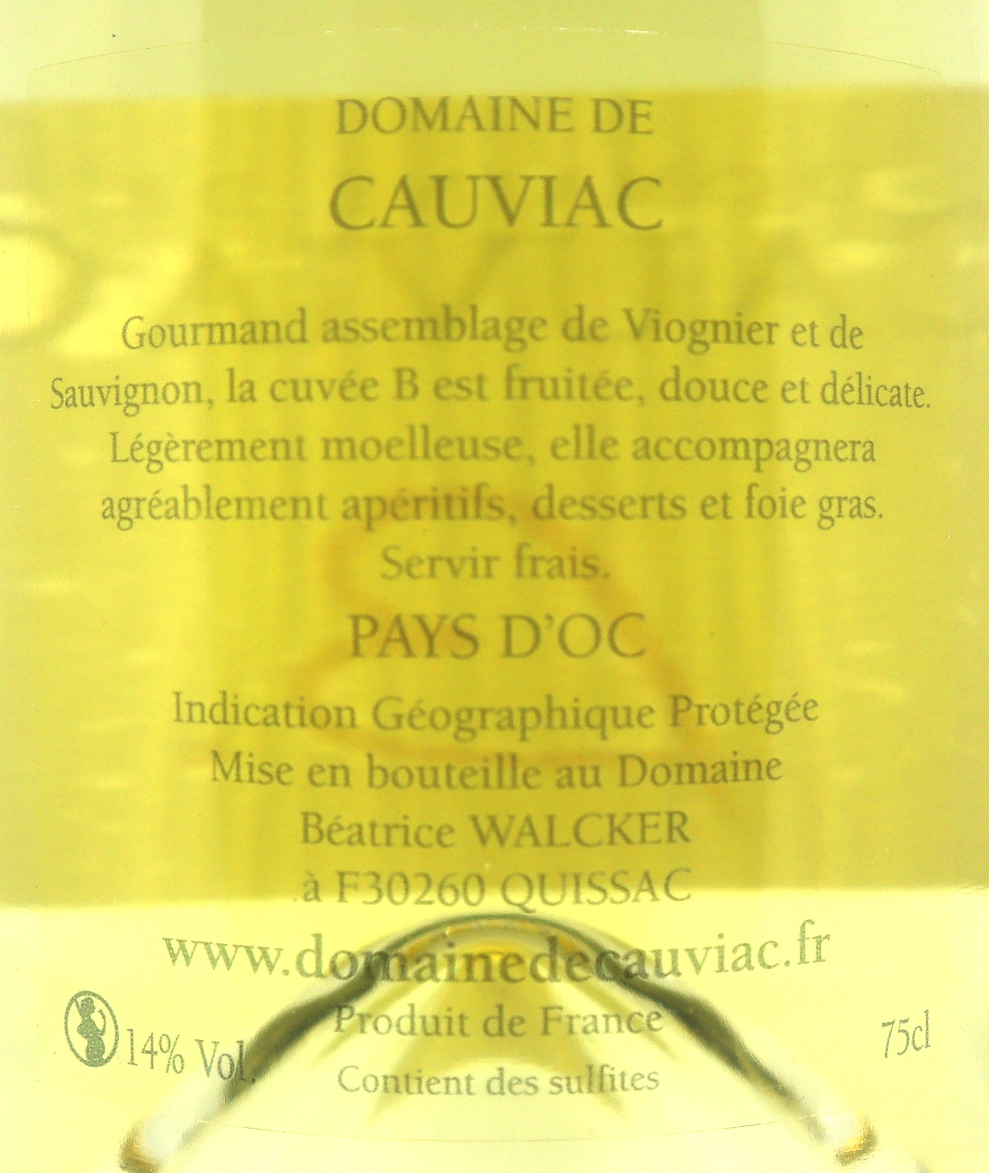 Le B du Domaine de Cauviac est une cuvée moderne et élégante en IGP Pays d’Oc, qui illustre parfaitement la richesse et la fraîcheur des terroirs languedociens. Ce vin blanc naît d’un assemblage subtil de Viognier et de Sauvignon, deux cépages complémentaires qui apportent chacun leur personnalité et créent une harmonie gourmande et raffinée.